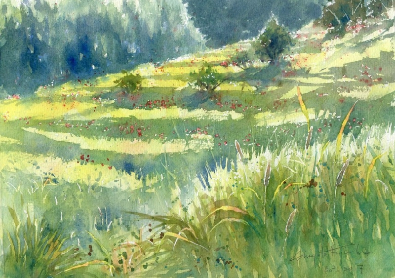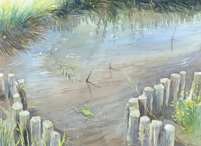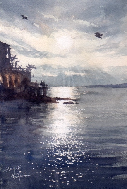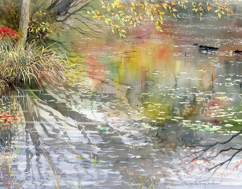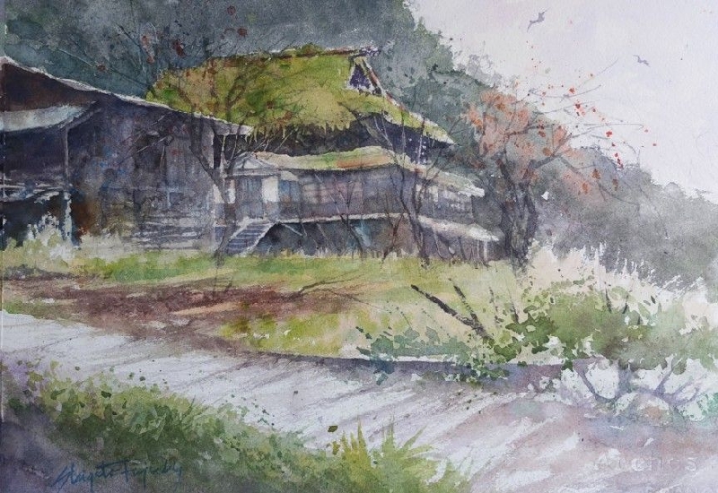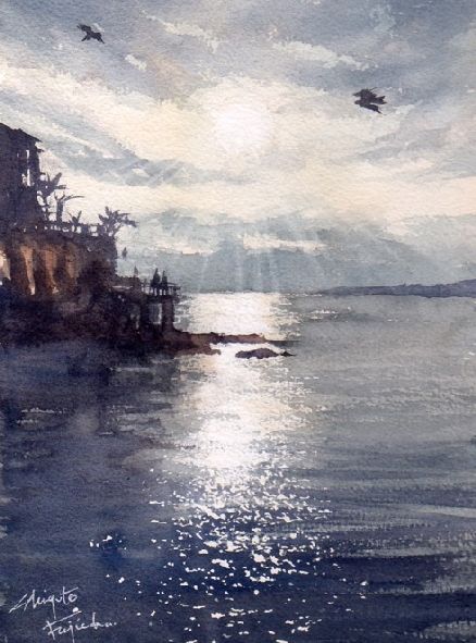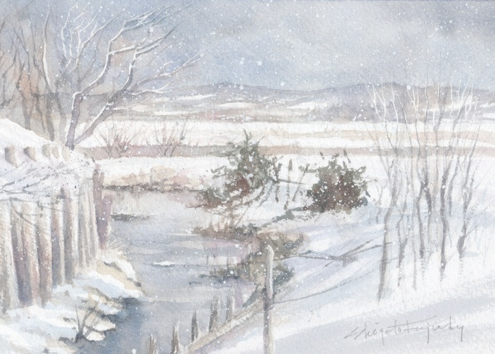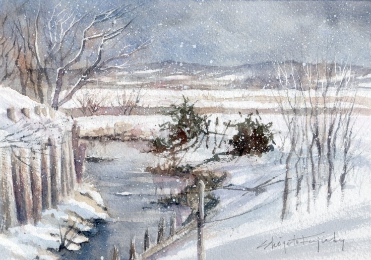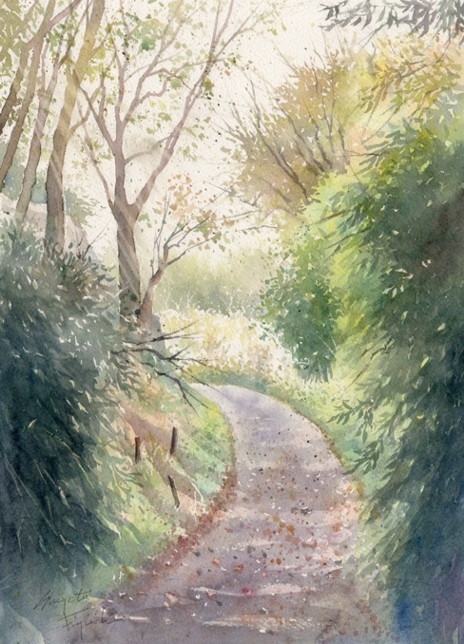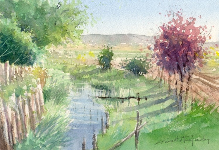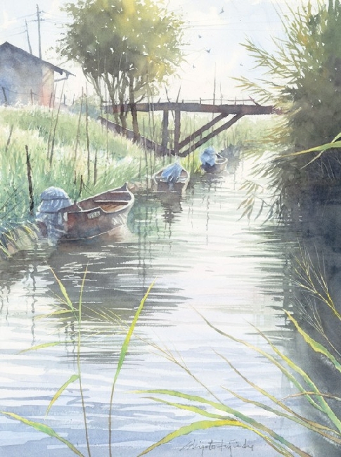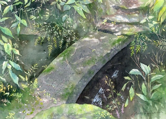 作品画像はクリックすると拡大します。画像下には制作した日付を表示しています。右側は作品のタイトル/使用した紙のブランド及び紙目の粗さ/モチーフの場所などを記載してあります。