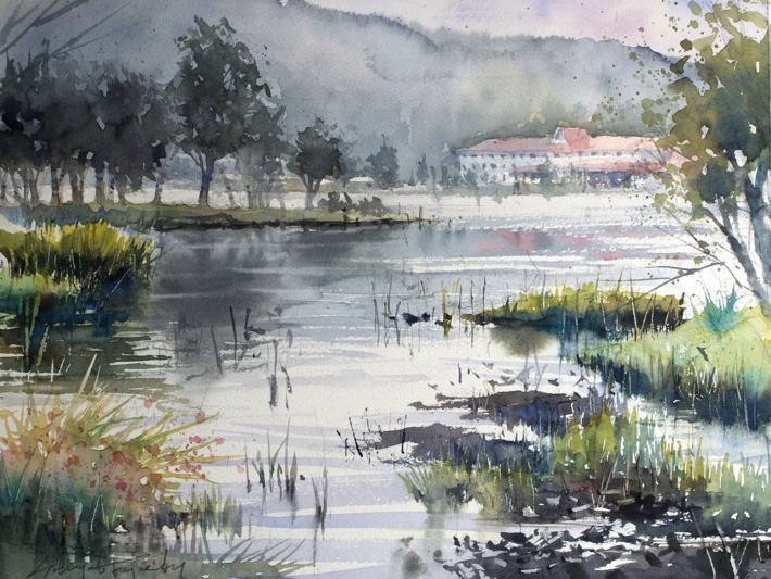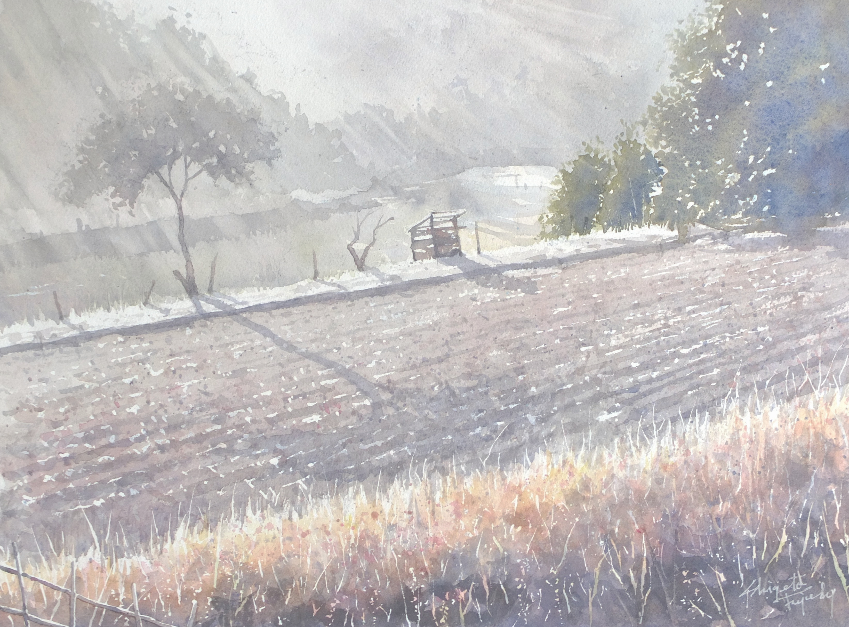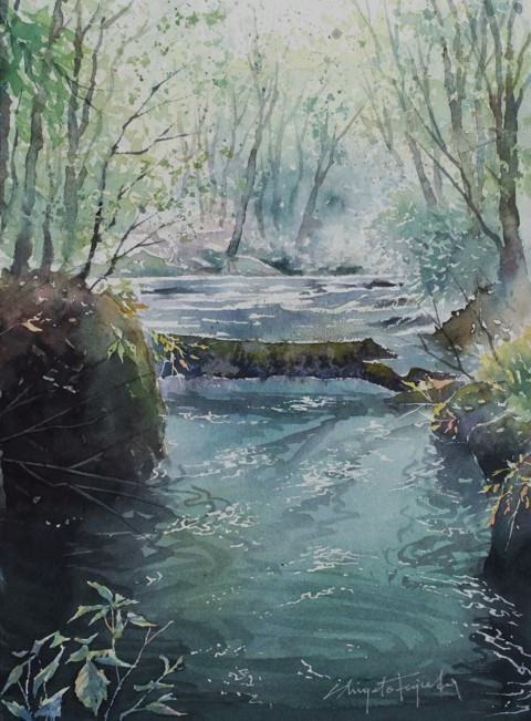 作品画像はクリックすると拡大します。画像下には制作した日付を表示しています。右側は作品のタイトル/使用した紙のブランド及び紙目の粗さ/モチーフの場所などを記載してあります。