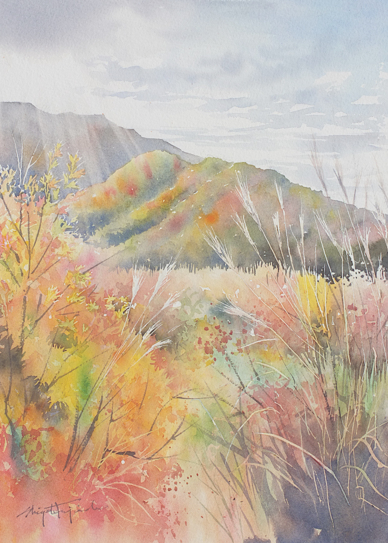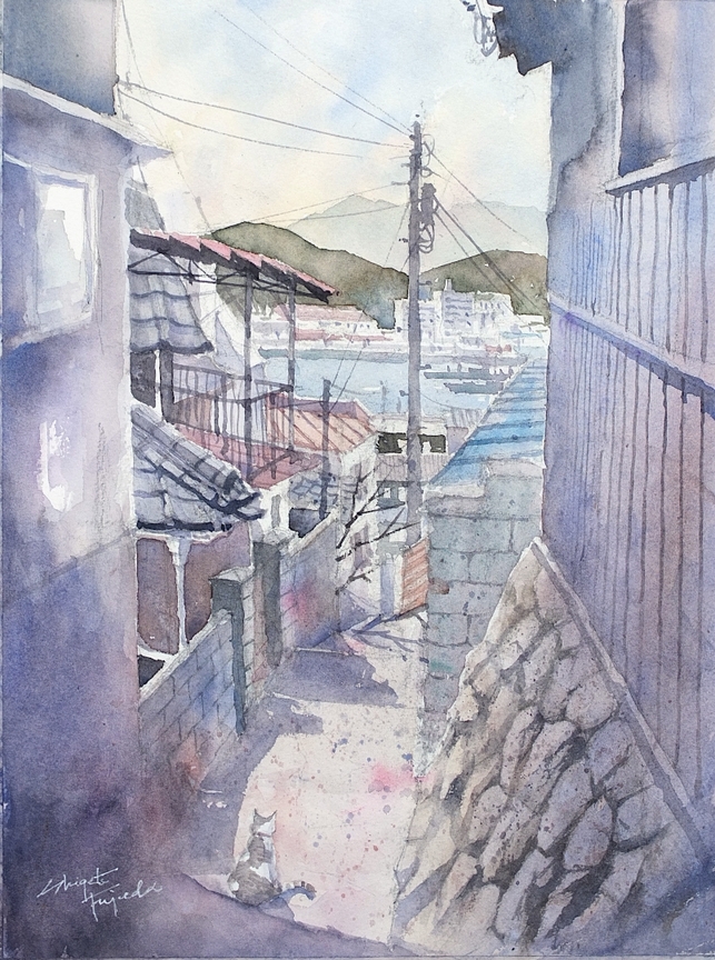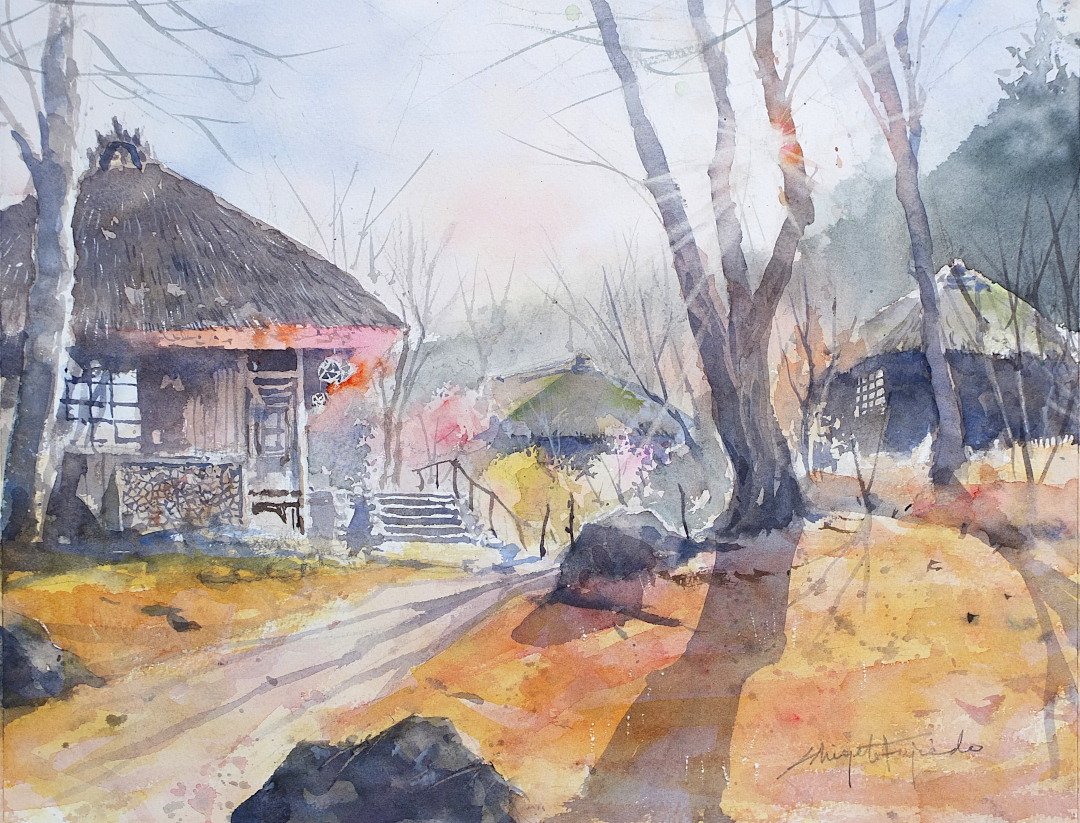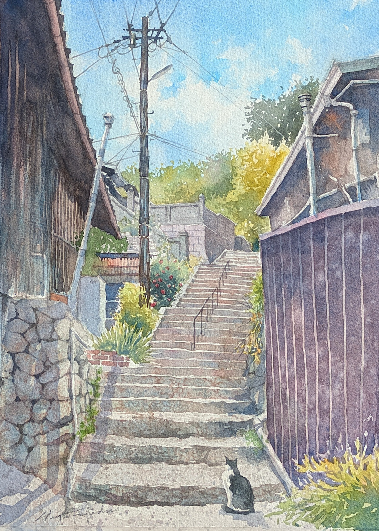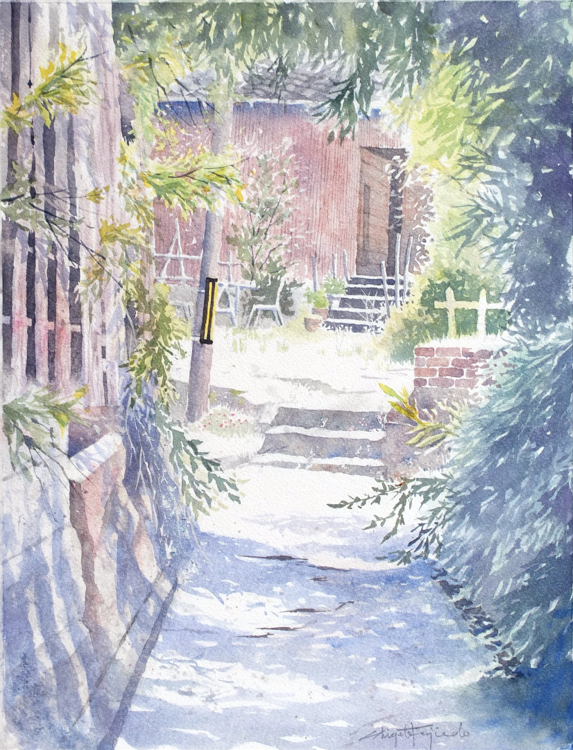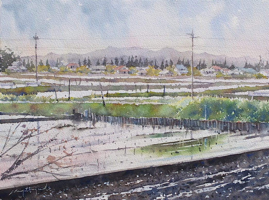 作品画像はクリックすると拡大します。画像下には制作した日付を表示しています。右側は作品のタイトル/使用した紙のブランド及び紙目の粗さ/モチーフの場所などを記載してあります。