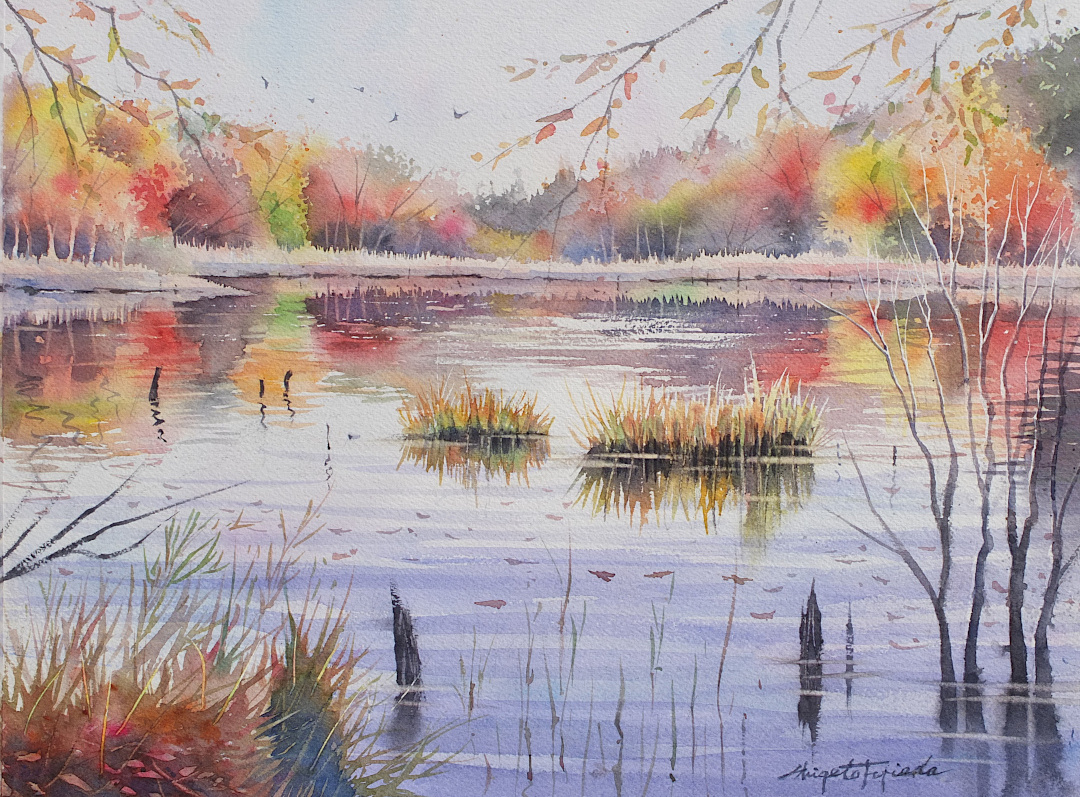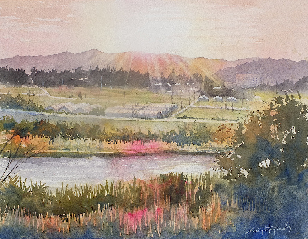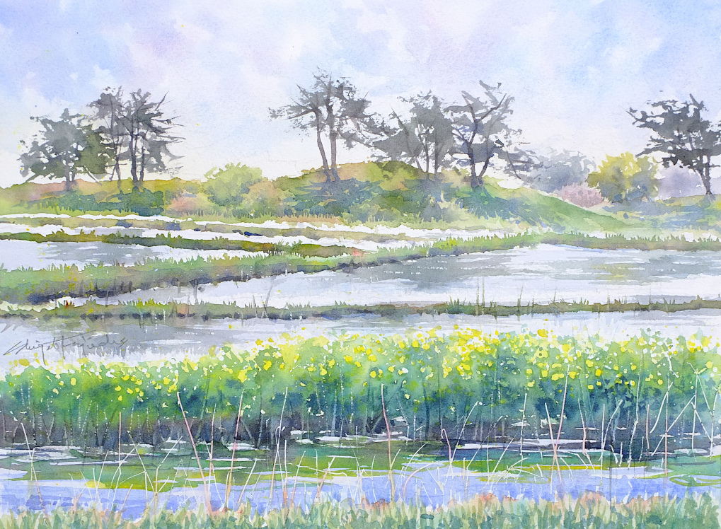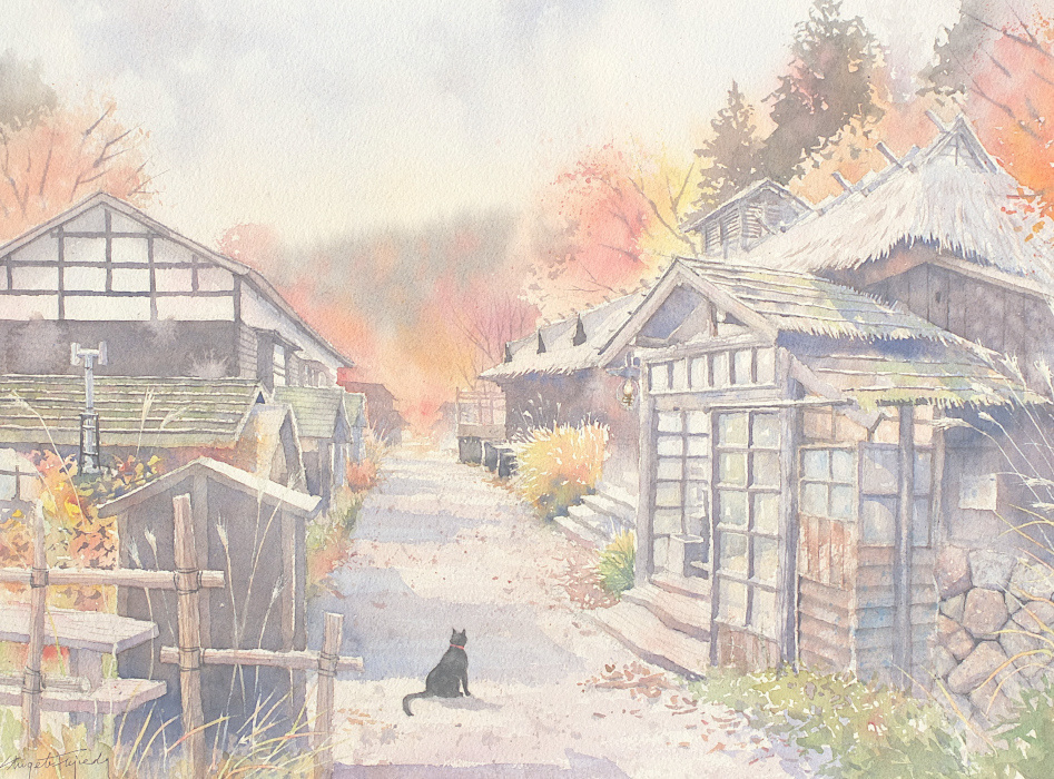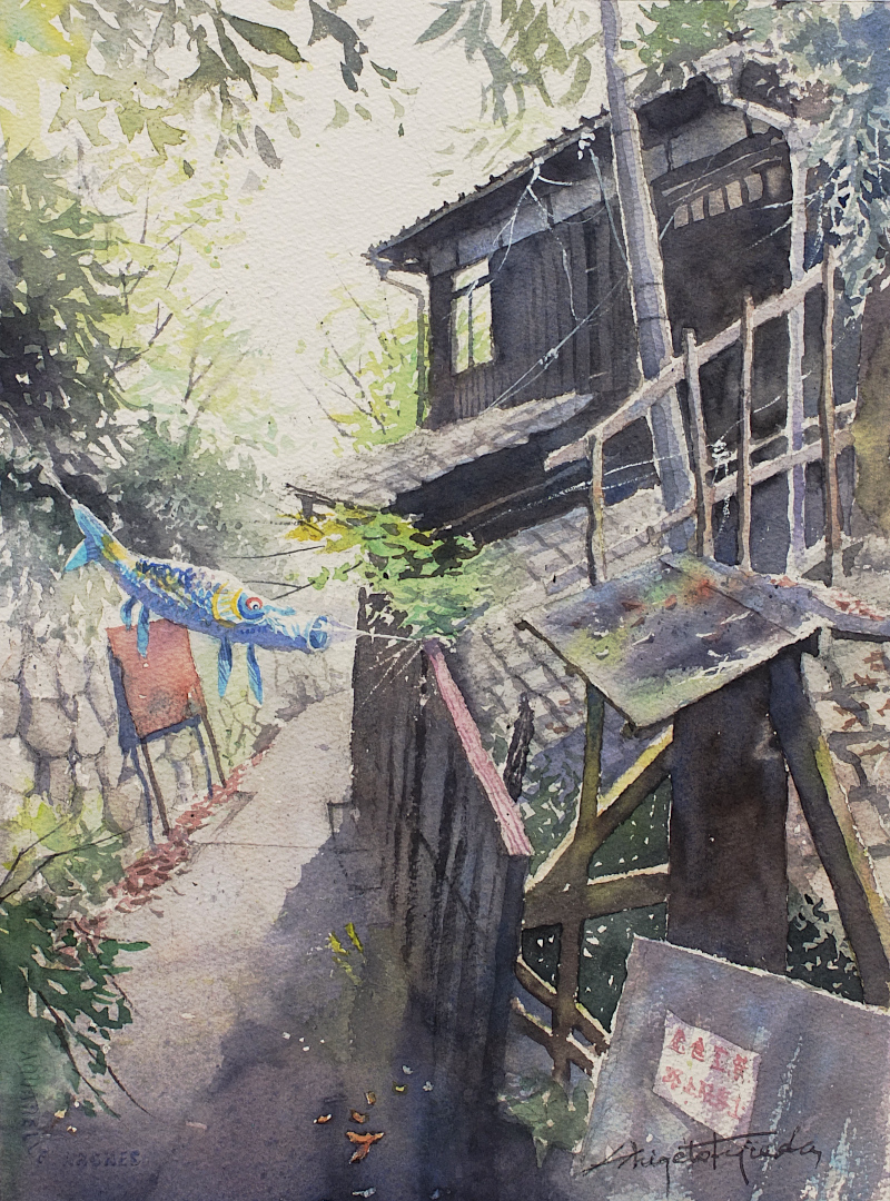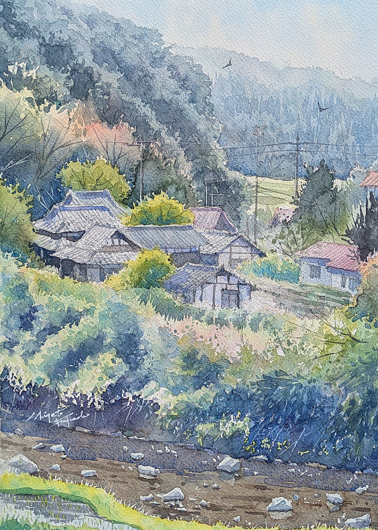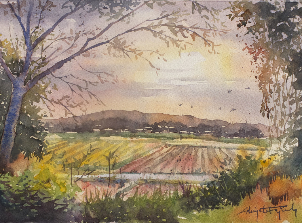 作品画像はクリックすると拡大します。画像下には制作した日付を表示しています。右側は作品のタイトル/使用した紙のブランド及び紙目の粗さ/モチーフの場所などを記載してあります。