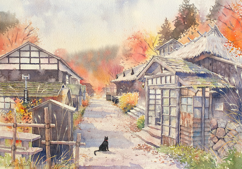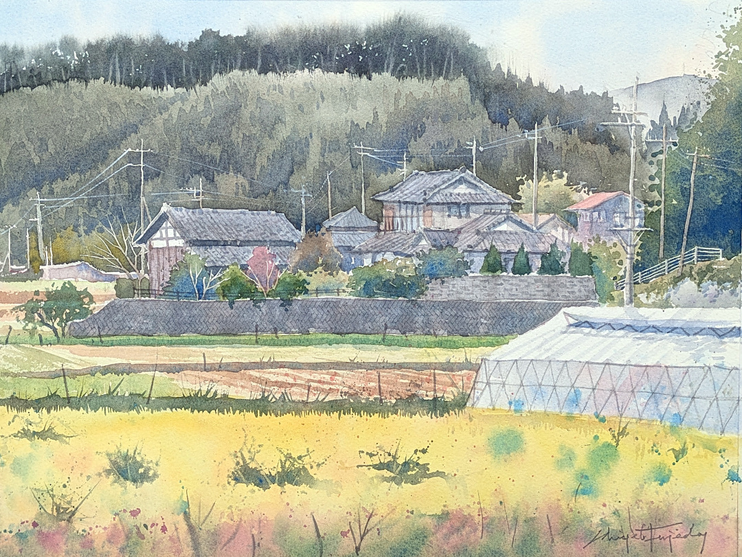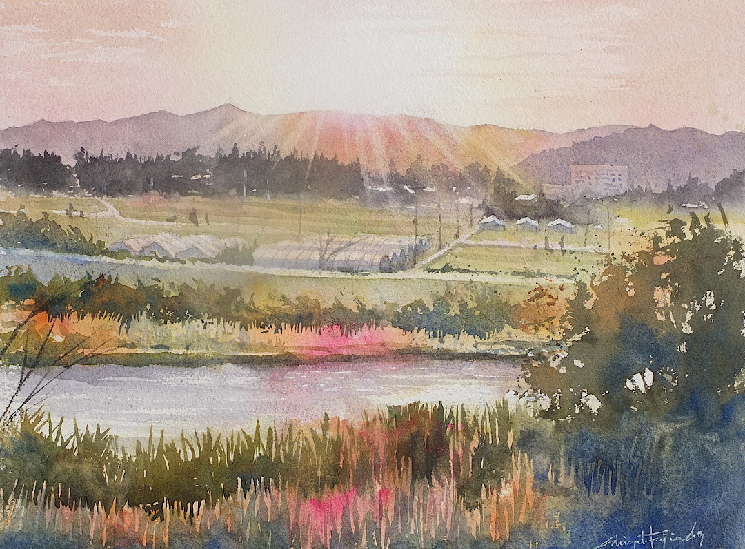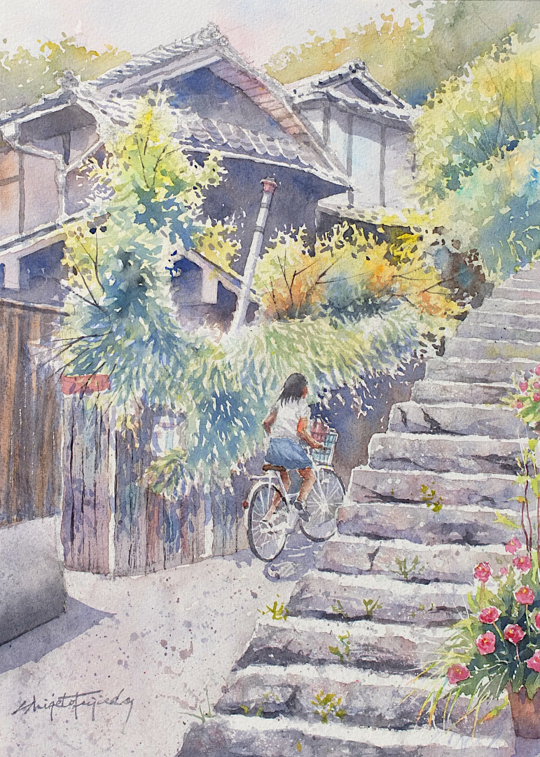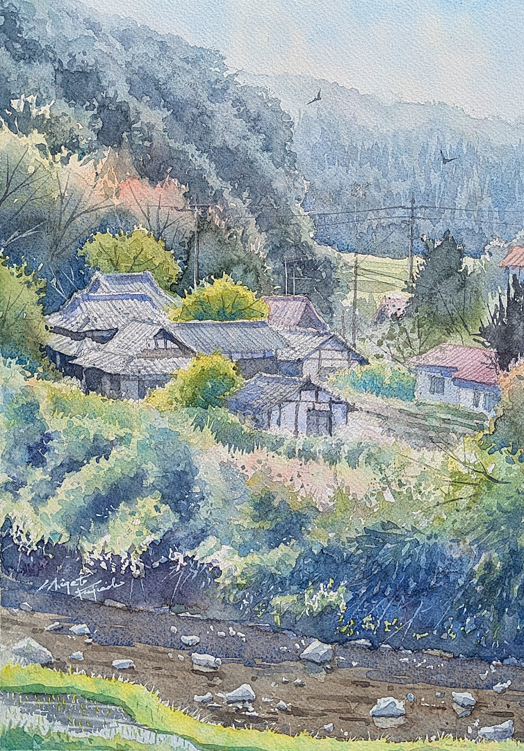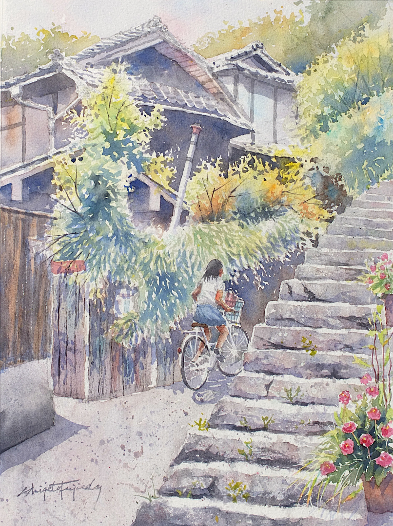 作品画像はクリックすると拡大します。画像下には制作した日付を表示しています。右側は作品のタイトル/使用した紙のブランド及び紙目の粗さ/モチーフの場所などを記載してあります。