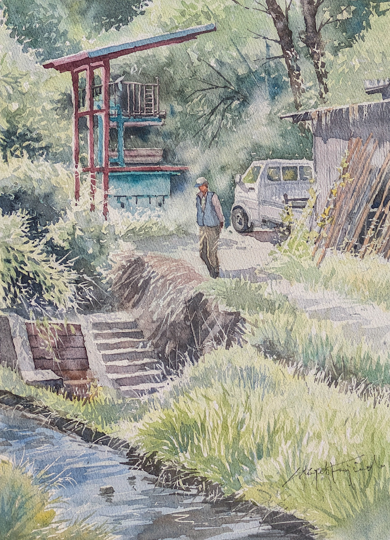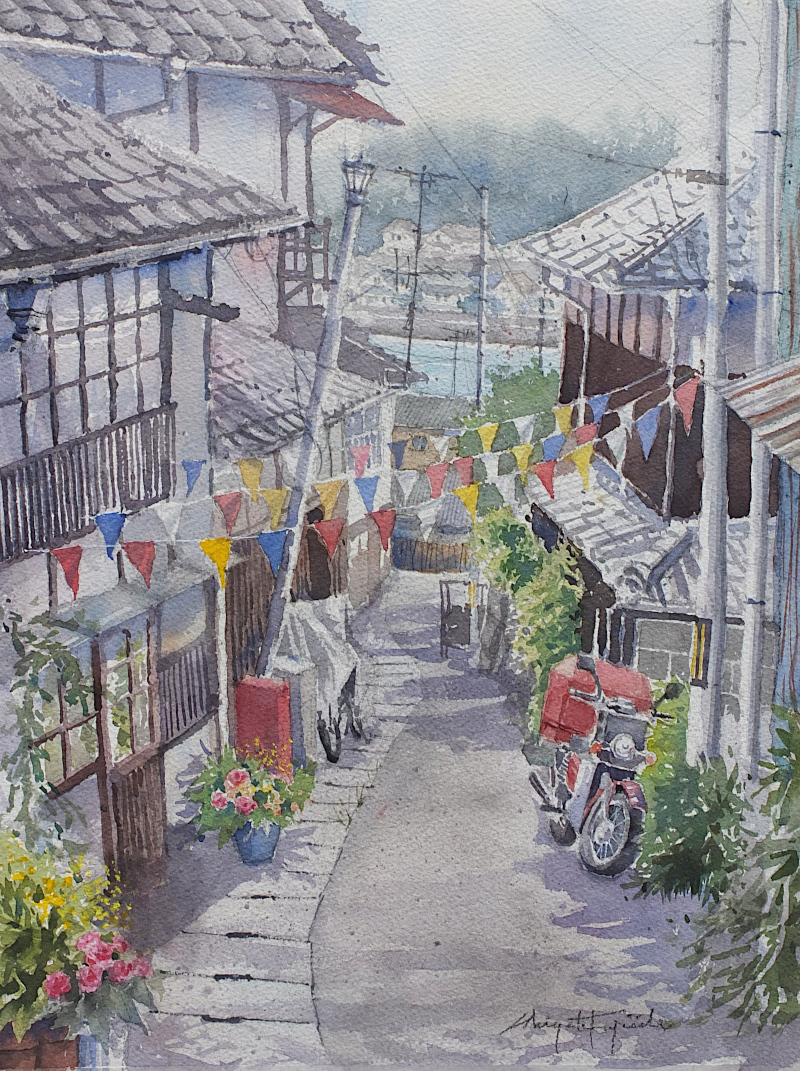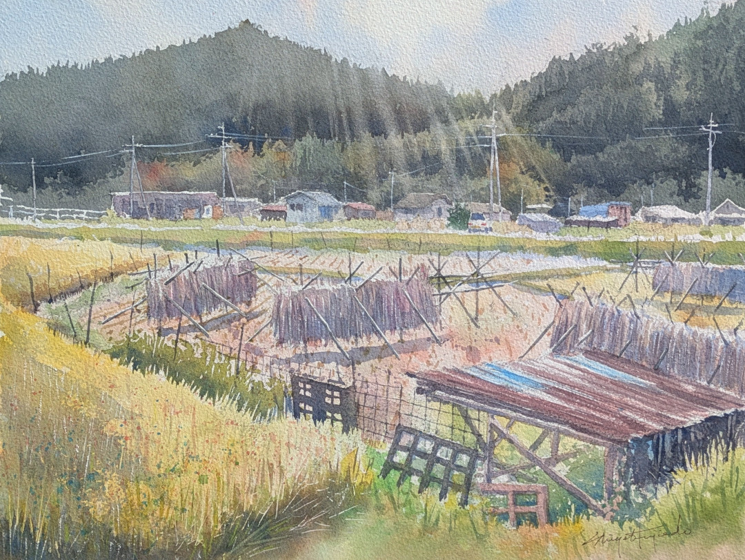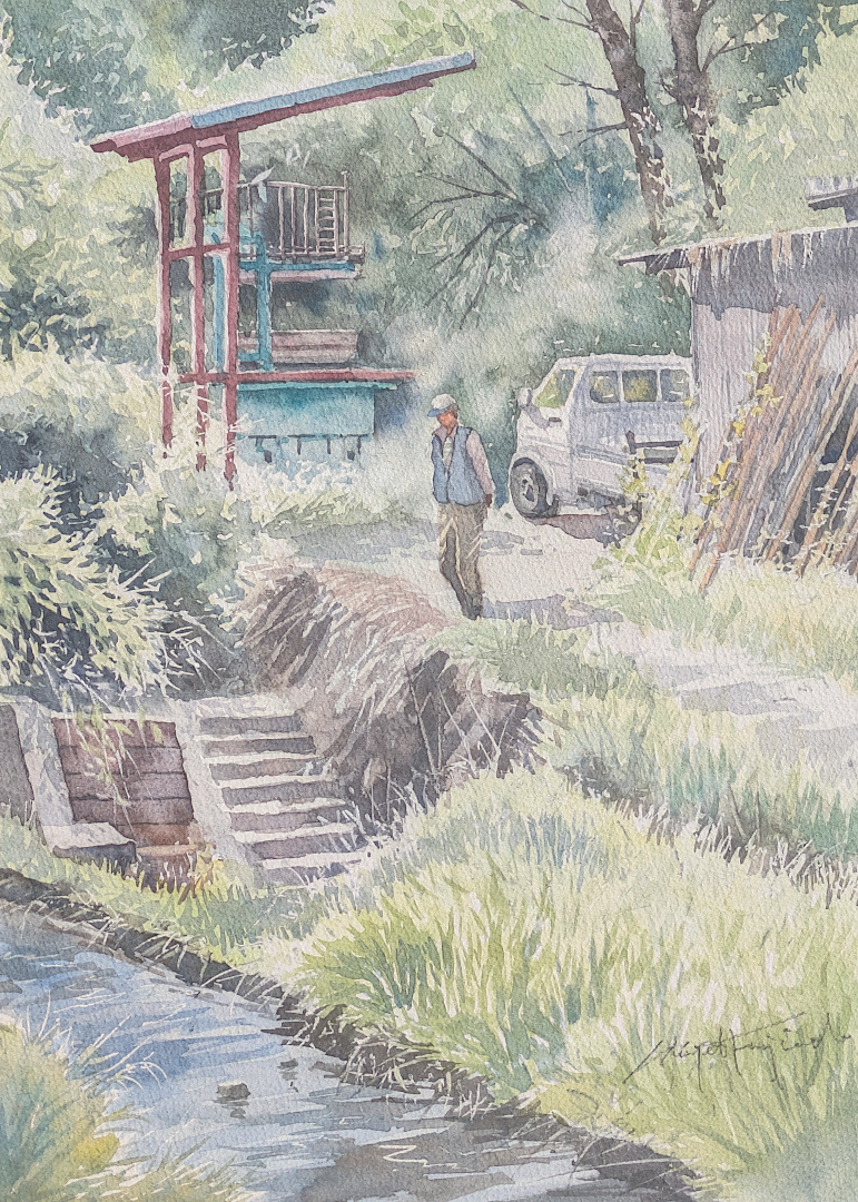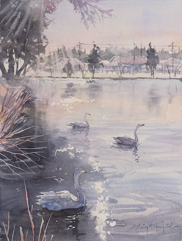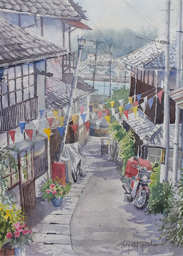 作品画像はクリックすると拡大します。画像下には制作した日付を表示しています。右側は作品のタイトル/使用した紙のブランド及び紙目の粗さ/モチーフの場所などを記載してあります。