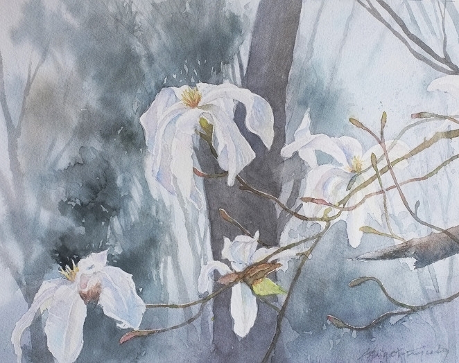 作品画像はクリックすると拡大します。画像下には制作した日付を表示しています。右側は作品のタイトル/使用した紙のブランド及び紙目の粗さ/モチーフの場所などを記載してあります。