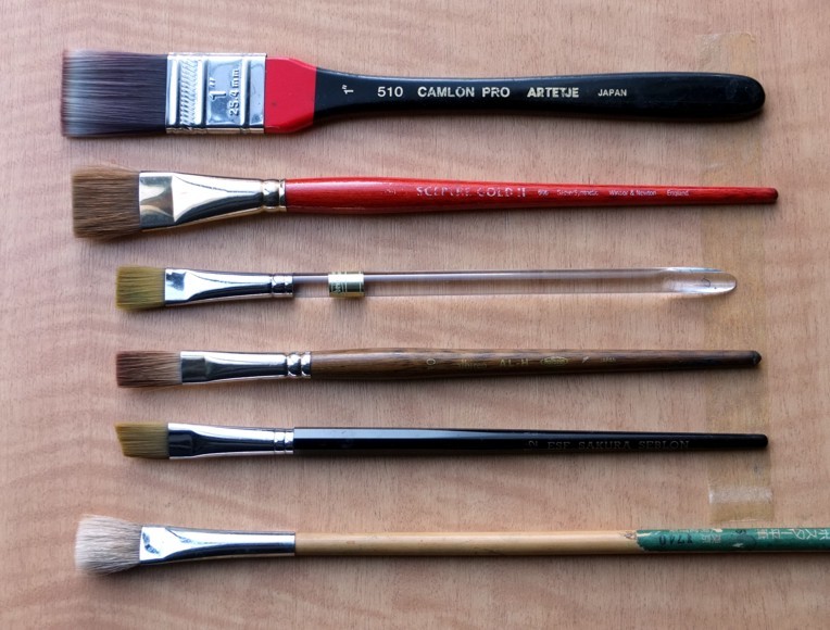 価格は材質によってピンキリですが安価なナイロン筆は数百円、最上級品は黒テンの毛を使ったものでコリンスキーと呼ばれ1本、数千円~数万円もします。残念ながら経験上高価なものはやはり書き味が違います。ナイロン筆でもいいものは有るけれど穂先がすぐ磨り減って長持ちはしません。いずれにしてもメンテを怠るとどんな筆でもダメになってしまう。
