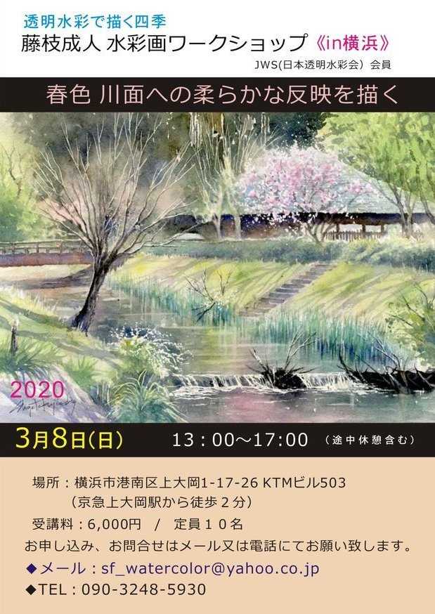 テーマは「春色 川面への柔らかな反映を描く」です。ぜひご参加ください!!